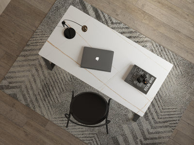 Beautiful piece of furniture. Sleek black legs and thin stone top look really elegant.